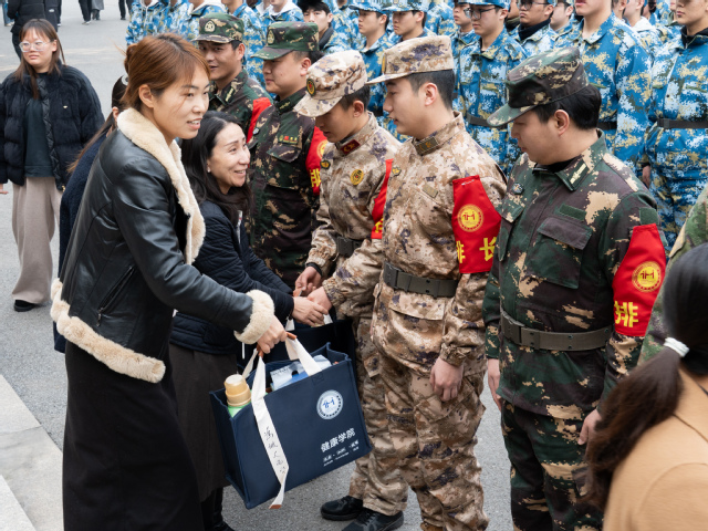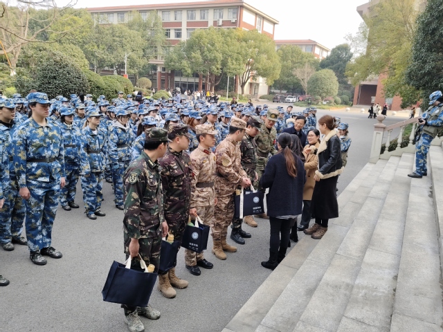 慰问尾声,领导老师们给每位带训教官们送上了慰问礼品,感谢他们在军训中所付出的耐心和努力,对他们辛勤的工作表示由衷的感谢。