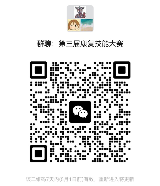 另外,本次比赛的优秀团队或个人将获得优先选拔的机会,进入全国康复治疗相关专业学生技能大赛的参赛队伍!(注:全国康复治疗相关专业学生技能大赛是国家级的一类竞赛,每两年举办一次,大赛得到了世界物理治疗联盟(WCPT)、世界作业治疗联盟(WFOT)等国际学术组织的大力支持,是迄今康复类专业规格最高、规模最广的全国性技能大赛)。这是一个展现技术、挑战自我的绝佳平台!