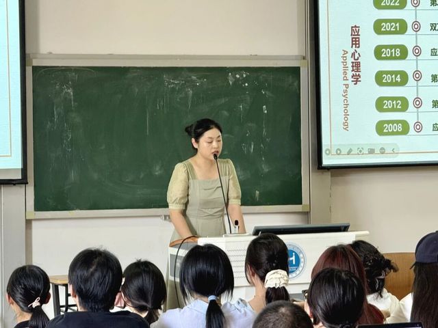 应用心理学专业介绍见面会由侯辰老师主讲。该专业成立于2008年,现为上海市一流本科专业建设点,秉持“应用型、实践性”特色,拥有14名专职教师(含9名博士),并聘请多位行业专家担任兼职导师。课程体系涵盖心理学导论、心理咨询、实验心理学等核心内容,与多家单位共建实训基地。学生需修满173学分,平均绩点达2.0,通过英语四级与计算机考试,毕业后可从事中小学心理健康教育、特殊儿童教育、企业人事管理等多项工作。专业社团“心之晓”将组织丰富实践活动,助力学生成长。
