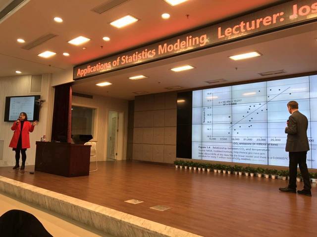 讲座中,Joseph Jacobsen教授结合自身的实践经验和研究成果,简要介绍了统计建模的处理工具spss以及一系列处理数据的方法,如差异检验,相关分析和回归分析等。以温室效应和世界人口的增长为案例,通过线形图、散点图和统计结果表等方法说明了怎样对批量的数据处理建模,并揭示数据背后的因素,诠释社会经济现象。