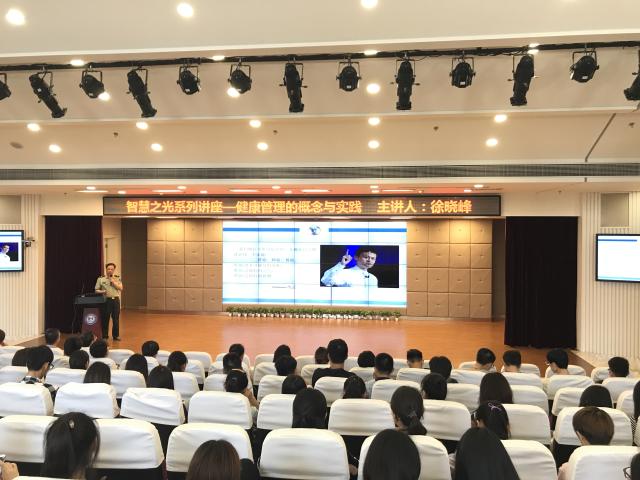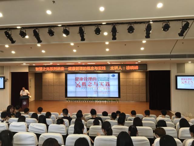 5月22日下午14:30分,于437ccm必赢国际晖华楼报告厅举办了“智慧之光”系列讲座《健康管理的概念与实践》。此次讲座由437ccm必赢国际承办,437ccm必赢国际院长祝亚平、党总支书记蔡勇永、437ccm必赢国际教师以及全体学生出席。