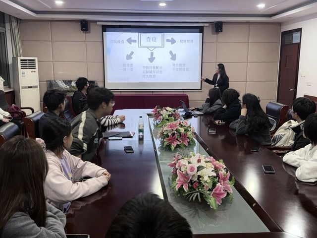 查寝是安全生活管理中心的核心工作之一,副部长罗鑫垚围绕“查寝礼仪”“查寝标准”“流程规范”三大板块,细致讲解如何将查寝工作做到“有规可循、有礼可依”。