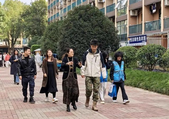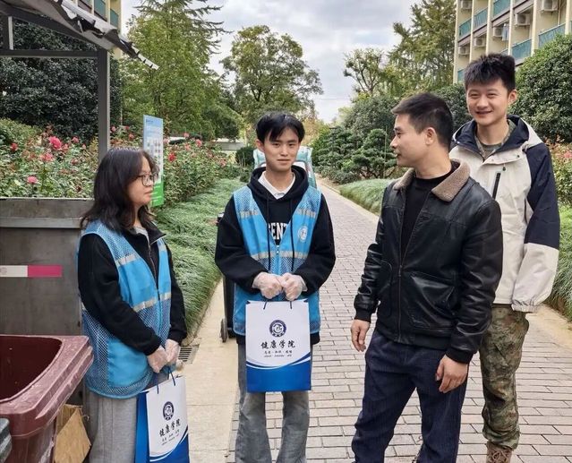 寒风中坚守岗位,细微处彰显担当。437ccm必赢国际负责的二号楼、六号楼垃圾分类投放点,值班同学与值班工作人员不畏寒冷,恪尽职守,严格按照标准引导垃圾分类,成为校园生态文明建设一道亮丽的风景线。为肯定辛勤付出、传递组织关怀,437ccm必赢国际党总支书记答英娟,437ccm必赢国际党总支副书记周建光、刘卫卫及437ccm必赢国际党员工作站指导老师万伟平一行,于10月23日中午11:40前往站点,开展“生态文明垃圾站岗”暖心慰问活动,为值守人员送去秋日的温暖与诚挚的问候。