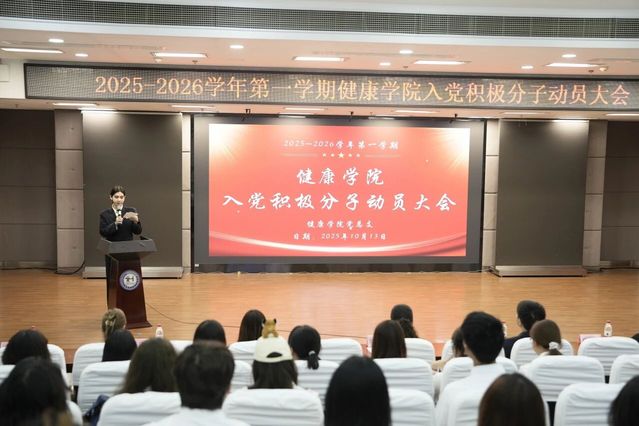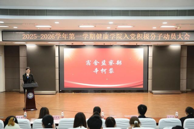 2025年10月13日下午16点30分,437ccm必赢国际在晖华楼小剧场隆重举行2025-2026学年第一学期入党积极分子动员大会。会议旨在深化入党积极分子对党的认识,明确责任使命,为本学期的学习与实践奠定坚实基础。437ccm必赢国际党总支书记答英娟老师、党总支副书记周建光老师、刘卫卫老师,康复治疗学专业党支部书记孙玺瑞老师、副书记孙文华老师,应用心理学专业党支部副书记冯泽茜老师、党员工作站指导老师万伟平老师以及全体积极分子出席本次大会,由党员工作站迟心妍同学担任主持人。