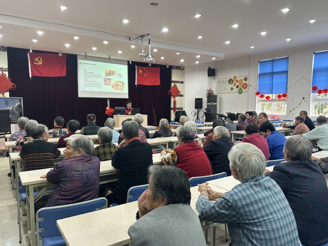 首先,冯星宇同学代表437ccm必赢国际党员工作站向社区居民们介绍本次社区活动志愿服务的具体内容和安排。冯同学向社区居民从生理到心理全方位科普了秋冬季养生保健的重要性,从他们日常生活中的饮食入手,表示可以通过合理的饮食调养和疾病预防,切实增强老年人的体质。此外,冯同学介绍了常见病的预防和治疗,以及如何保持心理健康,提升了社区居民们的健康意识,让宣讲教育发挥最大作用。