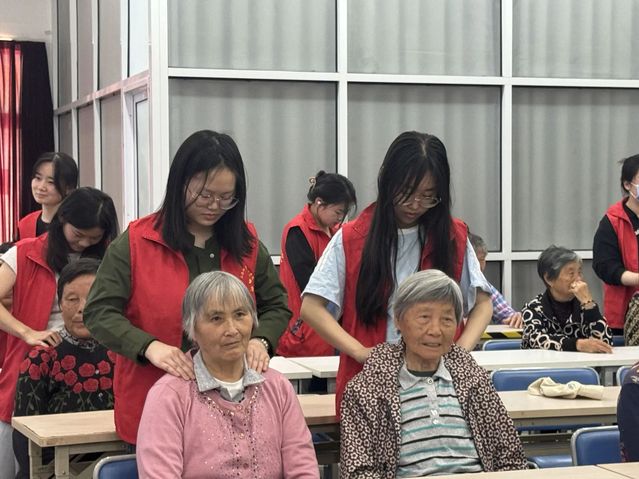 接着,437ccm必赢国际党员工作站的志愿者们开始为社区居民提供志愿服务,同学们先是认真询问居民的身体状况,接着有针对性的为居民进行按摩推拿。在按摩过程中,同学们利用自己的专业知识,耐心向居民们讲解日常肩颈保健应注意的相关问题,并针对身体平时易产生的疲劳状况,手把手地教居民如何找到相应穴位,并自我按摩缓解。服务过程中,同学们热情与居民交谈与沟通,了解居民的饮食和运动习惯,进行相应的健康宣教,得到了居民们的一致好评。