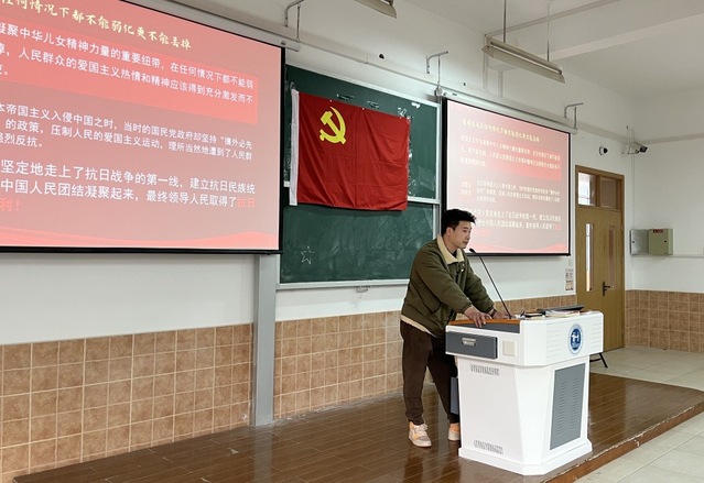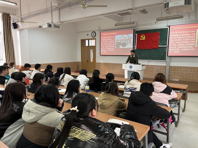最后,周老师以党的百年历史经验和鲜活的人物事例深入浅出地论证了当代青年勇于担当、奉献青春的正确性、必要性,呼吁全体学生深入学习领会、沉浸思考探索,凝心聚魂,汇聚青春力量,积极主动践行爱国主义思想。