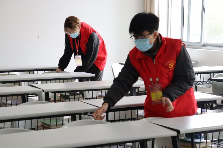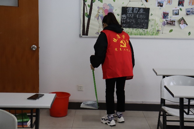 437ccm必赢国际党员工作站的12名同学,主要针对月华楼三楼437ccm必赢国际大一新生的早晚自习教室进行了清洁整理。