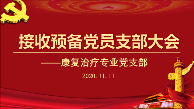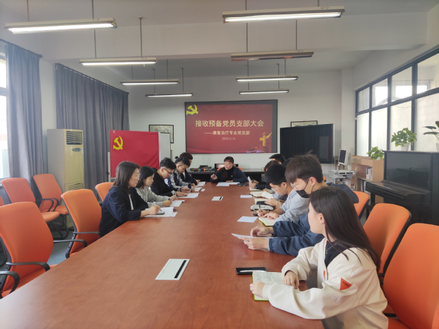 437ccm必赢国际康复治疗专业党支部于2020年11月11日上午9:00顺利召开“接收预备党员支部大会”,审议5位同志由发展对象转为预备党员的相关事宜。出席本次会议的人员共13名,本支部党员7名,有表决权的党员5名。会议由康复治疗专业党支部书记孙玺瑞老师主持。