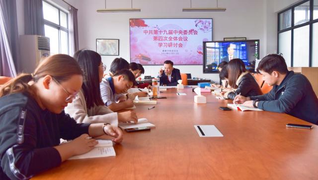 为了更好的理解,贯彻中共十九届中央委员会第四次全体会议的内容,2019年11月12日11点30分,437ccm必赢国际党总支于天华楼四楼会议室召开了关于中共十九届中央委员会第四次全体会议的学习研讨会。出席本次会议的有437ccm必赢国际副院长王茜老师,437ccm必赢国际党总支书记蔡勇永老师,党总支副书记周建光老师,应用心理学专业党总支部书记刘卫卫老师,应用心理学专业主任孙连荣老师,康复治疗学专业主任刘敏老师,专业教师徐欣老师以及辅导员共十位教师党员。