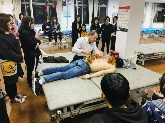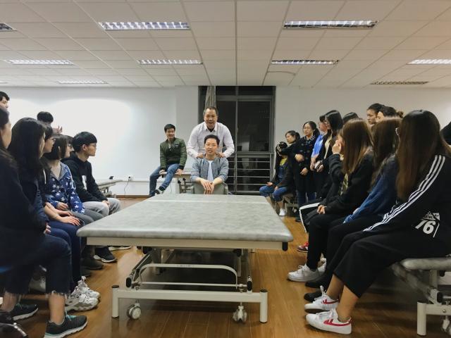 接下来由张荣健教授指导培训,通过现场进行治疗的方式向在场的同学们展示了一系列针对肩颈、腰背部的治疗方法。接受完治疗的老师及学生身上的不适感瞬间改善,纷纷称赞张教授康复治疗手法的有效性。在学习过程中,积极分子们认真聆听,互相配合,认真练习推拿手法和放松肌肉的技巧。本次培训活动中张荣健教授通过治疗将理论与实践相结合,使在场的积极分子们的推拿技术有了进一步的改进与提高,对之后开展服务有了更大的信心。