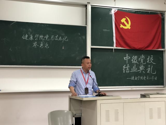 典礼最后,由蔡勇永老师为典礼致辞。他先是肯定了同学们在中党学习中的表现,也提出了一些不足的地方。其次,蔡勇永老师为学员们提出了三点意见:第一,强调了学员们要不断的加强理论学习,端正学风。第二,鼓励学员们要奋发成才,做到实现个人价值与实现社会价值的统一。第三,说明了理论要联系实际的重要性。最后,蔡勇永老师为同学们今后的工作和学习提了明确的要求,为同学们接下来的工作和学习指明了方向,并鼓励同学们争取早日入党,为党组织做出贡献。