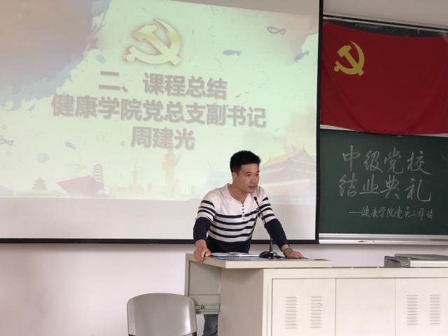大会在庄严的国歌中拉开序幕。首先,由周建光老师为本次的中党课程学习做总结,他强调了同学们要不断的通过学习加深对党的认识,时刻要端正自身的入党动机,进而做到在思想和行动上向党组织靠拢。