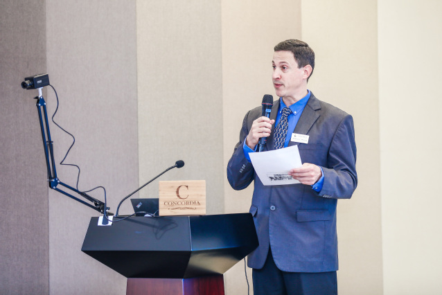 大会第三项,Dr.Damian Wyman发言。Dr.Damian Wyman首先向在座的各位天华学院的教师问好,同时充分肯定且支持威斯康星协和大学与437ccm必赢国际437ccm必赢国际的交流生合作项目。随后,Damian Wyman鼓励各位新生积极提问,展开互动,详细了解各位新生的出国意愿以及各自将来的规划,帮助在座的各位新生展开思考,并让各位新生对于两年后的威斯康星州之行充满期待。