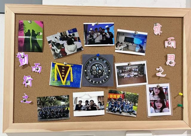 该班展示了多样活动和显著成果,记录了同学们在辩论现场、班级活动、军训过程中的精彩瞬间。同时还陈列了班级荣获的流动红旗等荣誉。左右两侧分别以“勤而行之”和“慎而思之”为标语,体现班级的价值追求。