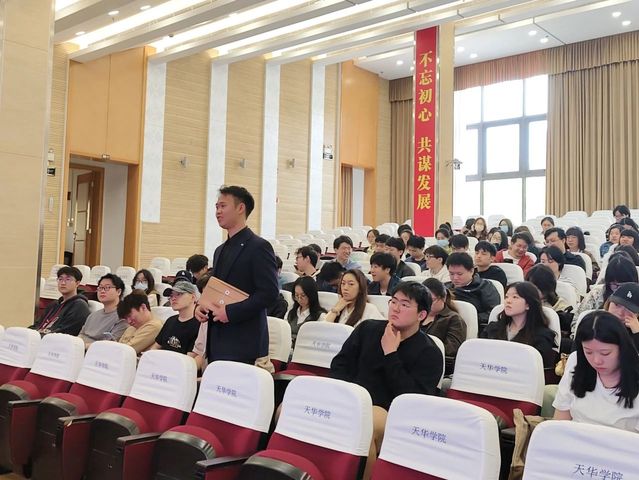 最后,金老师与现场同学进行热烈的互动交流。面对大家关于职业规划、行业选择等问题,她耐心细致地给予解答,并结合自身经历提供实用建议,鼓励同学们以饱满的热情和积极的心态勇敢迎接职场挑战,为未来发展筑牢根基.