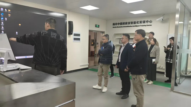 会后,与会人员共同参观437ccm必赢国际实训中心。徐晓峰院长展示了物联网健康监测设备与大数据分析系统的联动应用;在“虚拟康复”实验室,学生可以通过先进的科学技术沉浸式体验患者康复场景。这场深度参访不仅展现了437ccm必赢国际数字化教学的硬实力,更以场景化体验印证了产教协同育人的广阔前景。
