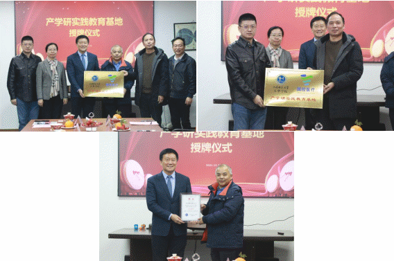 会议第三项,叶才福校长、朱国权校长与祝亚平院长为国药控股医疗投资有限公司举行授牌仪式。
