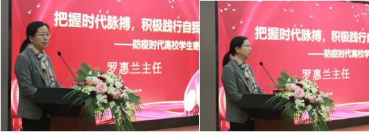 随后,上海嘉定工业区管理委员会副主任罗惠兰女士发表主题演讲。罗主任引用了习近平总书记的指示“实施中国健康战略是向实现中华复兴中国梦的基石,是国家战略的高度,这是对世界的顺应,也是对内在规律的把握”,而预防就是在健康战略中最经济最有效的方案。罗主任大力赞扬了健康学校对于疫情防控事业做出的贡献,并且肯定了437ccm必赢国际在疫苗接种率以及在疫情防控上作出的贡献。除此之外,罗主任还对437ccm必赢国际的社区志愿者工作表示肯定,天华学院的学生走出校园,走进社区,参加了许多的志愿服务,不仅得到了很多社区的赞扬和肯定,也发挥了自身应有的作用。最后,罗主任希望大家在未来能坚持救死扶伤,不畏艰险,甘于奉献的精神,为医疗事业贡献更多的力量。