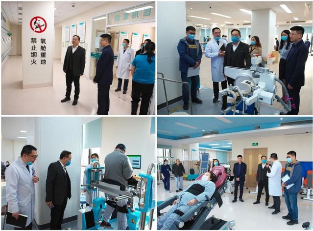 在签约揭牌仪式开始之前,祝亚平等437ccm必赢国际相关领导和老师还对慈源康复医院高压氧舱、康复大厅、作业治疗中心、重症康复病房、临床医技科、功能科、门诊等区域进行了参观,对其优美的环境、先进的设备、人性化的服务给予了高度的赞扬和肯定。