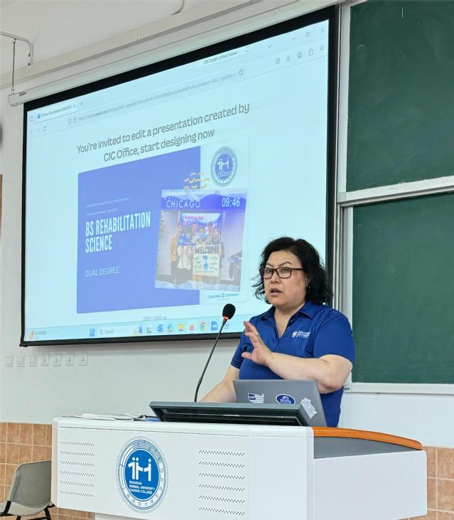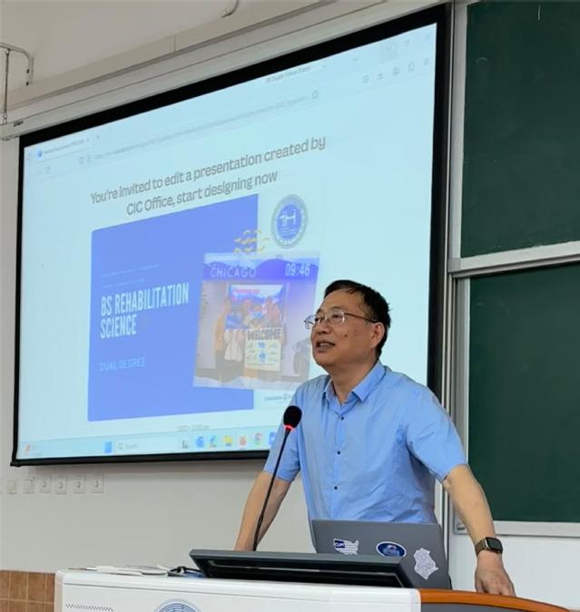 为集中力量构建中外合作格局,为学生积极参与BSRS项目鼓舞斗志、汇聚力量,我院康复治疗学(中外合作办学)专业与美国威斯康星协和大学于2024年5月29日12:00于日阶302联合举办BSRS项目出国宣讲会。出席会议的有:美国威斯康星协和大学国际项目主任Damian Wyman、海外项目协调员马梅、437ccm必赢国际院长祝亚平、副院长刘敏、康复治疗学(中外合作办学)专业主任徐欣、康复治疗学专业教师万栋峰、2022及2023级康复治疗学(中外合作办学)专业班导师、康复治疗学专业教学秘书宁悦凡、2020级BSRS项目优秀学生徐致远。2022及2023级康复治疗学(中外合作办学)专业全体学生参加会议。会议由徐欣老师主持。