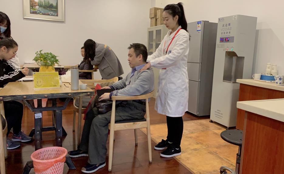 为贯彻落实党十八大提出推进服务型党建能够密切党和人民群众关系的理念,提升党员工作站成员的服务能力与工作效率,践行“全心全意为人民服务”的基本宗旨,我院从十月初至十一月末开展为期两个月的服务型党组织活动。每周一、周三中午12:00于日华楼教师休息室,每周二、周四晚19:00-20:00于天华楼271面向所有教职工开展,旨在通过采用传统康复手法(如推拿、拔罐、针灸)和使用理疗仪器来治疗肩周炎颈椎病、下腰痛、运动损伤、办公室综合症等问题。